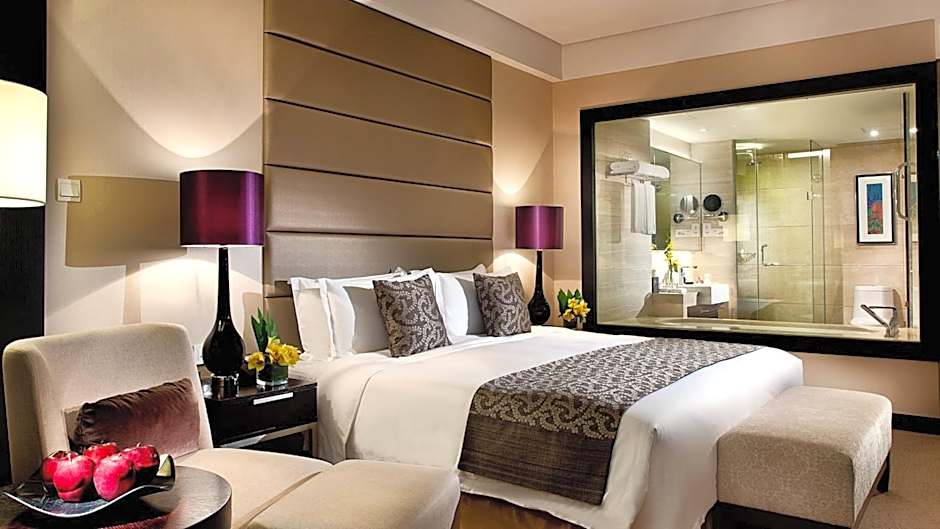On-site dining keeps cravings amused with flair. 皇冠咖啡厅 (Crowne Café) offers Modern and Romantic vibes with a wide menu spanning American, British, Seafood, Steakhouse, Asian, and European cuisines. 青303 is a family-friendly option with Cantonese, Chinese, and Local fare in a setting that blends Traditional and Modern elements. After a day by the lake, a stylish Bar provides a pleasant spot to unwind, while an indoor pool offers a refreshing pause.